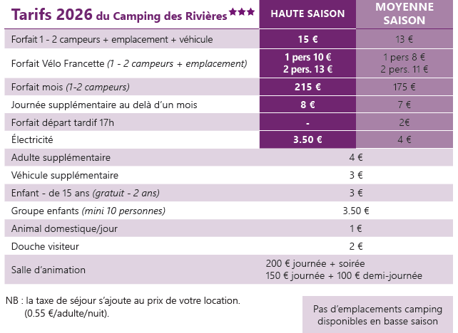 ATTENTION : conformément au règlement intérieur, nous n’acceptons pas les caravanes à double essieux
